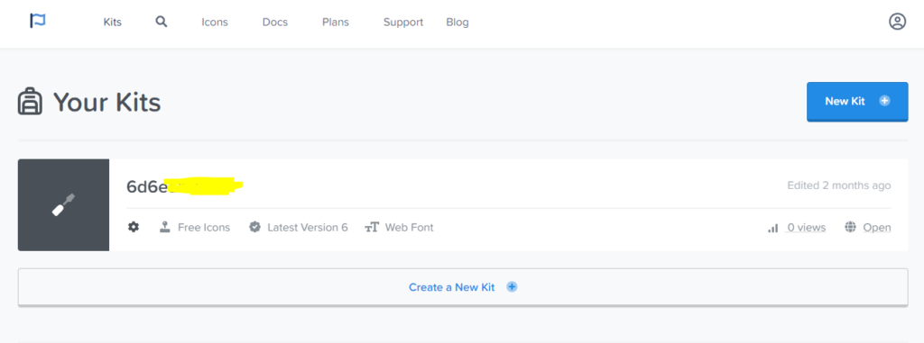 Para fazer isso, acesse o site oficial da biblioteca de fontes e ícones e crie uma conta. Na aba kit, crie um kit.